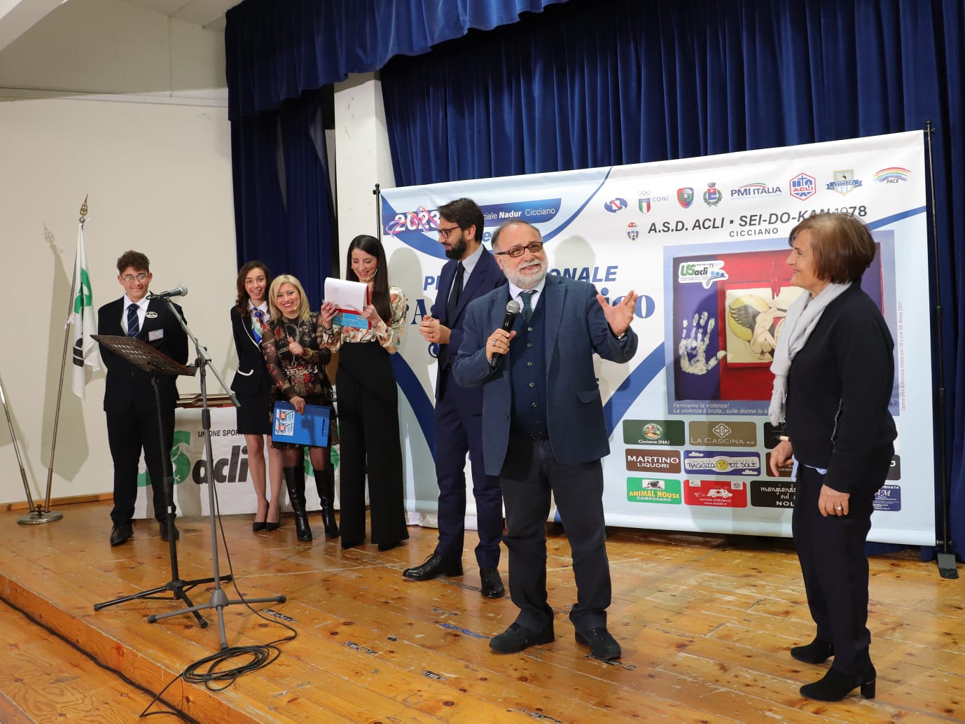 Sabato sera, presso il Centro Nadur di Cicciano, si è svolta la V edizione del Premio Nazionale “Ass. Domenico De Stefano”. L’associazione ASD Acli Sei-Do-Kan ha omaggiato l’Assessore allo Sport del Comune di Cicciano Domenico De Stefano, scomparso all’età di 42 anni, con un evento che ha visto coinvolte molte figure che rappresentano a pieno i suoi valori. A presentare la serata al Teatro Nadur, il presidente dell’ACLI Sei-Do-Kan Antonio Lombardi, la giornalista e referente della comunicazione dell’associazione, Preziosa Lombardi e la dr.ssa Rossella Tarantino. Madrina dell’evento la dottoressa Rossella Miccio, presidente di Emergency.