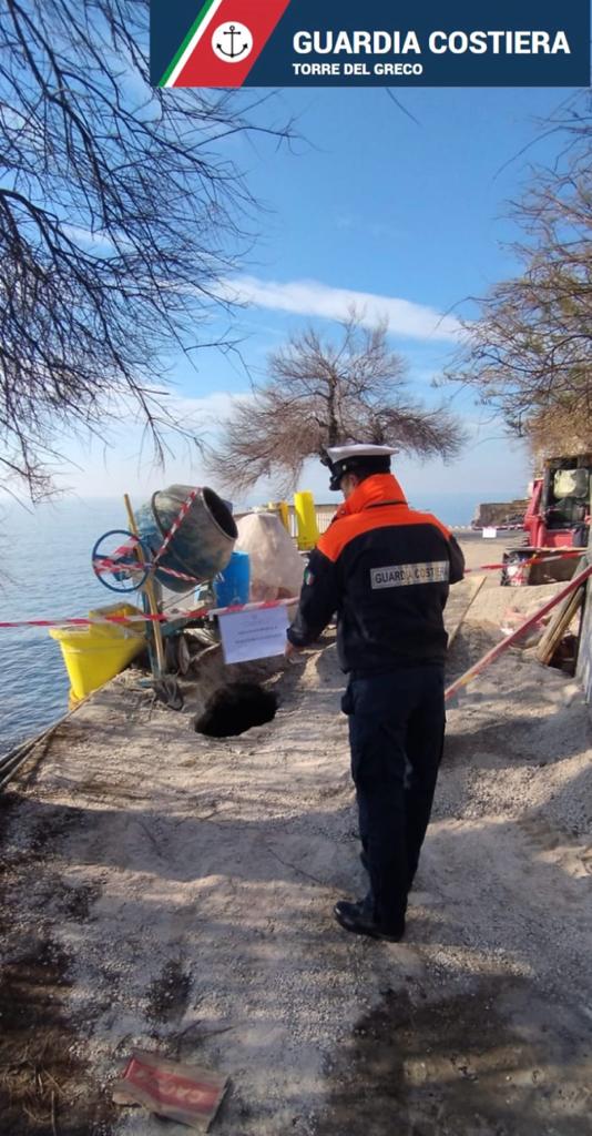 Uno scavo ed una gettata di cemento su una scogliera in zona “Campanariello” a Torre del Greco hanno compromesso irrimediabilmente lo stato naturale dei luoghi. La guardia costiera ha denunciato i responsabili e posto sotto sequestro il sito e tutte le attrezzature rinvenute. L’operazione è stata effettuata nelle scorse ore dopo la segnalazione di alcuni diportisti, circa lo svolgimento di un’attività edile, verosimilmente sospetta, in prossimità delle falesie che caratterizzano la scogliera.