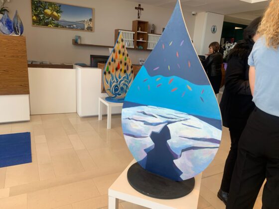 Gocce d’Acqua, insomma, ideata dal fondatore di Terre di Campania Giuseppe Ottaiano, consiste in diverse installazioni artistiche che mirano a raccontare, attraverso un “mare di gocce” dipinte da artisti del territorio, il legame tra acqua e vita. Terre di Campania sta sperimentando un’idea di comunicazione della risorsa acqua che coinvolge scrittori, persone di cultura, studenti e giovani attenti alle tematiche ambientali.