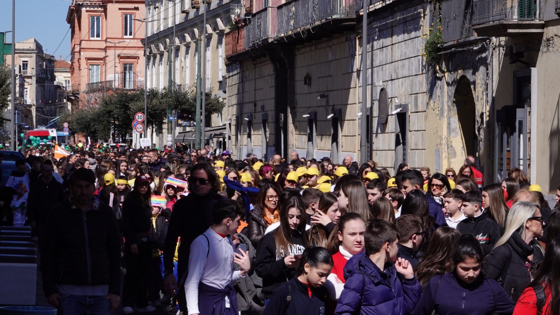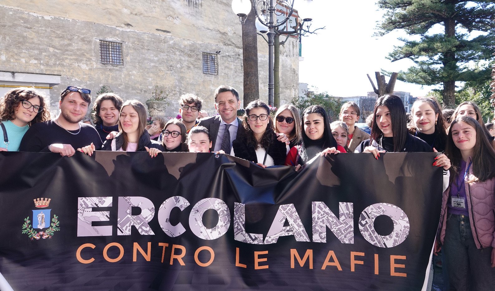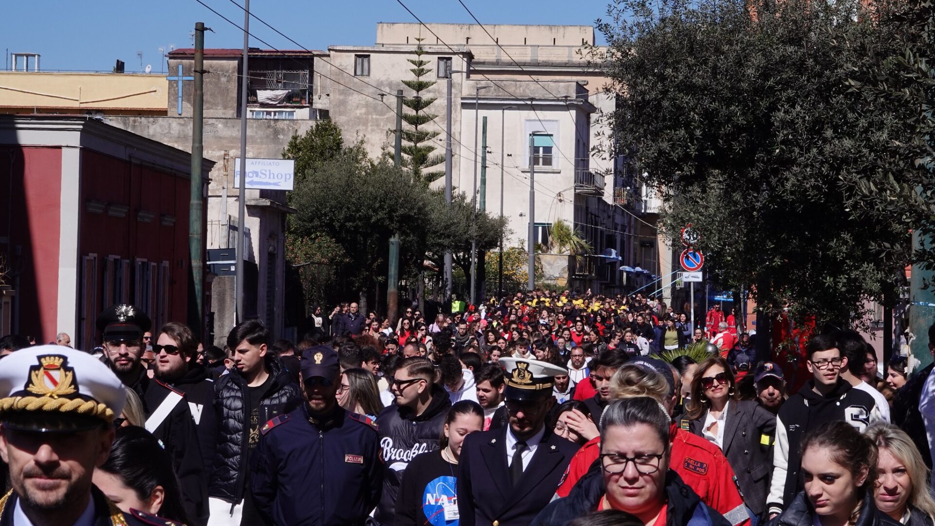 Migliaia di alunni oltre ad esponenti delle istituzioni, della chiesa, e cittadini si sono messi in cammino per dire ‘NO’ ad ogni forma di criminalità ad Ercolano: è la giornata clou del progetto “A scuola di sicurezza, legalità, giustizia, ambiente” (coordinatrice e promotrice Eva Gable) che ha chiamato a raccolta alunni dell’istituto comprensivo 1° Rodinò e di altre scuole del territorio.