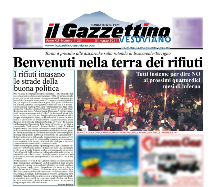 Il 31 marzo del 2011, esattamente 12 anni fa, il nostro settimanale cartaceo, apriva in prima pagina con un triste “benvenuto” nella terra dei rifiuti.