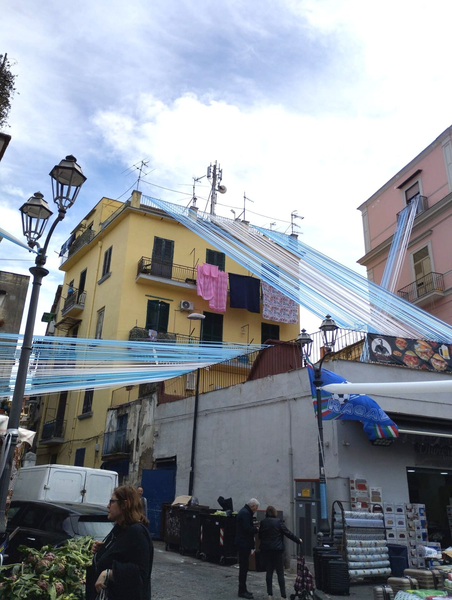 E la città di Portici non è assolutamente da meno, infatti, passeggiando tra le vie principali e non, da qualche settimana, lo spettacolo è tutto bianco e azzurro: timide e scaramantiche le prime bandiere esposte ai balconi, e ancora striscioni, nastri, sciarpe e decorazioni di ogni tipo.
