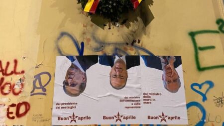 “Per le strade di Napoli stamattina sono spuntati dei manifesti che noi riteniamo satirici. Non sappiamo chi sia l’autore, ma pensiamo che sia una giusta provocazione per sottolineare che il 25 aprile è divisivo solo per chi non rivendica la storia antifascista del nostro Paese e continua ancora oggi ad attuare politiche che certamente non difendono i diritti sociali e civili di tutte e tutti. Il 25 aprile anche oggi deve significare liberazione da ogni forma di sfruttamento, oppressione e discriminazione. Piu che liberarci, il Governo Meloni oggi ci sta legando in un’onda di odio e violenza”. Così dal Collettivo autorganizzato universitario sui manifesti apparsi oggi a Napoli.