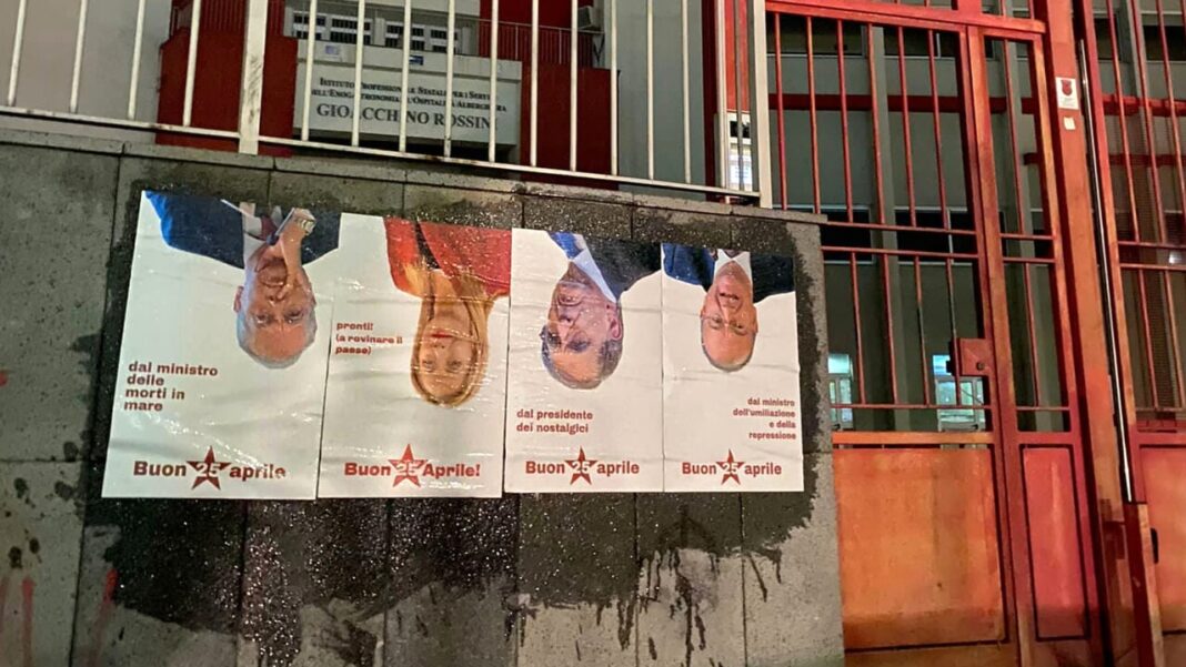 Napoli, prima città a liberarsi con una rivolta di popolo, dal nazifascismo ha celebrato oggi la festa del 25 aprile. Le celebrazioni si sono svolte in più punti della città ed hanno visto la presenza, accanto al sindaco di Napoli, Gaetano Manfredi, del ministro della Cultura, Gennaro Sangiuliano. Ma la giornata è stata segnata dalla comparsa di manifesti in una serie di punti della città con foto a testa in giù della presidente del Consiglio, Giorgia Meloni, del presidente del Senato, Ignazio La Russa, e dei ministri dell’Interno, Matteo Piantedosi e dell’Istruzione e del Merito, Giuseppe Valditara, nei pressi di luoghi simbolo della Resistenza.