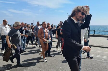 La camminata, in via Caracciolo, sul lungomare di Napoli, è durata un bel po’, davanti agli alberghi del lungomare. Vicino a lui numerose persone divertite che hanno ripreso la scena coi telefonini. Tanti i commenti sui social: “lo hai detto e lo hai fatto… massimo rispetto maestro!”, scrive uno dei suoi fan.