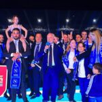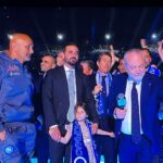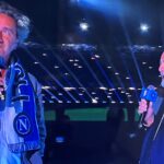 In campo artisti napoletani da Clementino a Liberato e sulla pedana tricolore proprio tutti. Dal premio oscar Paolo Sorrentino al presidente Aurelio De Laurentiis, dal capitano Giovanni Di Lorenzo ai magazzinieri, allo staff medico e tecnico, dalla squadra al completo all’artefice principale della vittoria azzurra il tecnico di Certaldo, Luciano Spalletti.