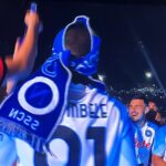 Al triplice fischio finale dell’arbitro Marchetti di Ostia la squadra ha cominciato un interminabile giro di campo sventolando le magliette azzurre e un gigantesco tricolore tra fumogeni azzurri e fuochi d’artificio, mentre Tommaso, lo storico magazziniere del club azzurro, al centro del campo ostenta il tabellone delle sostituzioni fisso sul numero 3, quello degli scudetti vinti dagli azzurri.