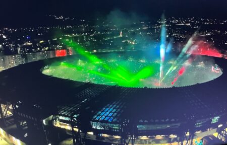 La festa allo stadio è stata un vero e proprio show da Oscar e quella infinita in città è partita già dalle prime ore del giorno nelle strade invase dai turisti, tanti quelli che indossavano la maglietta o un vessillo del Napoli, mentre fuochi d’artificio, cori e trombe facevano da sfondo alla visione della gara sugli schermi allestiti nei bar o nel tempio laico di Largo Maradona, ai Quartieri Spagnoli.