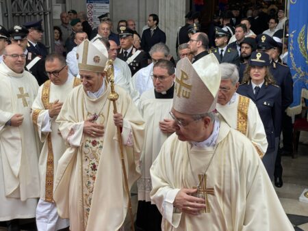 La cerimonia della supplica alla Beata Vergine ha avuto inizio sul sagrato del santuario mariano di Pompei nonostante la pioggia. Quest’anno, la funzione è presieduta dal presidente della Conferenza Episcopale Italiana, il cardinale Matteo Zuppi. Il vescovo prelato di Pompei, monsignor Tommaso Caputo, ha dato il benvenuto al cardinale Zuppi, sottolineando che la preghiera di quest’anno sarà dedicata in modo particolare alla pace in Ucraina. A Pompei, da oltre 15 anni, c’è una fiorente comunità di fedeli ucraini che si riuniscono ogni domenica sotto la guida del loro cappellano per la celebrazione della messa.