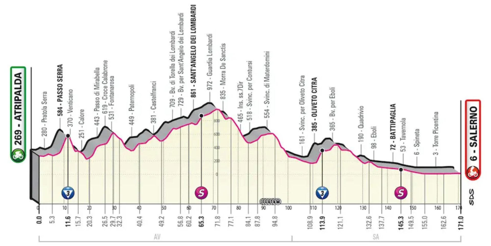 Il Giro proseguirà domani con la prima tappa tutta campana: si parte da Atripalda per 171 chilometri che porteranno a Salerno. Due stellette di difficoltà, ma occhio alle varie salite, che non presentano grandi pendenze, ma potranno rivelarsi molto insidiose.