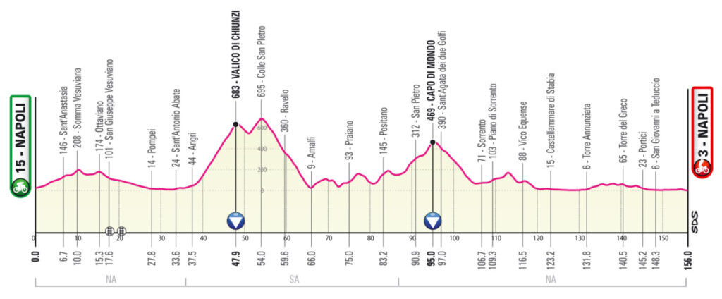 Tappa sostanzialmente breve con la sola asperità sui Monti lattari con il Valico di Chiunzi, e comunque non facilissima. Tutto è pronto per presentare il nostro fantastico territorio a tutto il mondo.