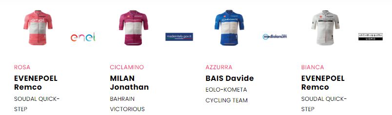E ora si comincia a fare sul serio, con le incombenti tappe alpine: sarà bagarre praticamente tutti i giorni per quanto riguarda la Maglia Rosa, ma anche per la Maglia Azzurra, adesso cucita addosso al nostro Bais. Nulla è scontato di fronte alle imponenti salite che aspettano i corridori fra qualche giorno.