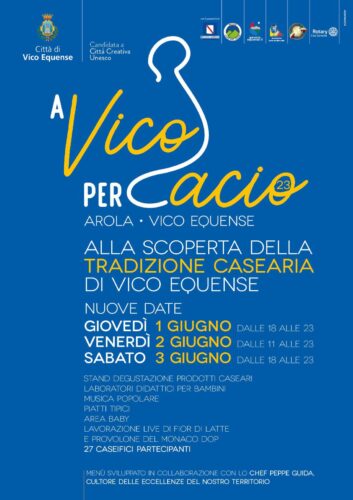 A causa delle avverse condizioni meteo previste per questo fine settimana, l’amministrazione comunale di Vico Equense e gli organizzatori hanno deciso di rinviare “A Vico per Cacio”. La kermesse dedicata a un’eccellenza vicana vi dà appuntamento a