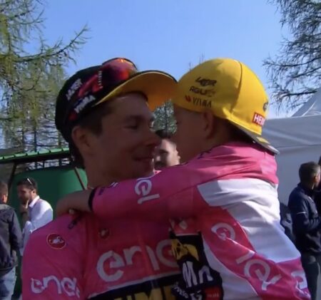 Qualche giorno fa, “Rogla” come lo chiamano i suoi tifosi, sembrava in crisi sul Bondone e qualcuno lo aveva anche dato per morto, ma oggi lo sloveno porta a termine una scalata che ha iniziato a farsi seria dopo il ritiro di Evenepoel. E’ stato probabilmente quello il frangente di Giro in cui lo sloveno ha capito di potercela veramente fare.