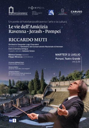 Quello al Teatro Grande dell’antica Pompei è infatti il terzo appuntamento dopo i concerti del 7 e 9 luglio, rispettivamente a Ravenna e Jerash, la “Pompei d’Oriente” in Giordania. Nell’anno in cui il Festival ha colto l’occasione del centenario della nascita di Calvino per intitolare la propria XXXIV edizione Le città invisibili, il fil rouge del comune passato romano e del patrimonio archeologico lega due città a lungo sepolte – l’una dalla cenere del Vesuvio, l’altra dalle sabbie del deserto – a Ravenna, il cui porto di Classe l’imperatore Augusto scelse per la flotta del Mediterraneo orientale.