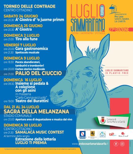 A Santa Maria la Carità sono iniziate le attività del “Luglio Sammaritano” che vedono nel “Palio del Ciuccio” l’appuntamento cruciale e più atteso. Dopo lo stop causa pandemia di Covid-19, il piccolo Comune dei Lattari è pronto a riabbracciare la sua più sentita tradizione. La gara è prevista per domenica 9 luglio e inizierà alle ore 21.