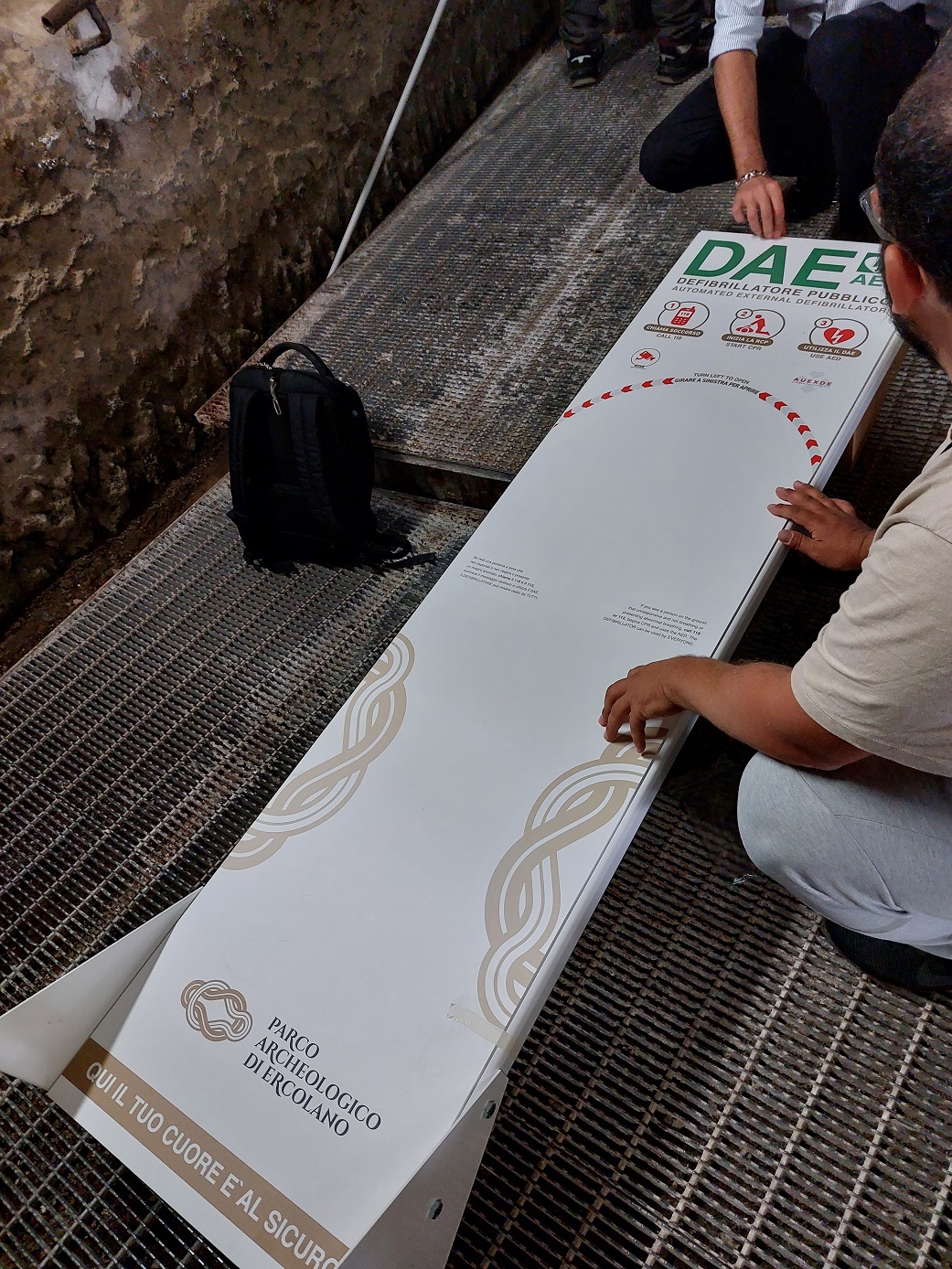 Basandosi su questi protocolli il Parco ha dunque progettato sia il numero sia la dislocazione delle installazioni sia nel Sito che negli edifici moderni a servizio dei visitatori, con alloggiamento dei defibrillatori dai colori visibili ma non in contrasto con la fruizione paesaggistica del contesto.