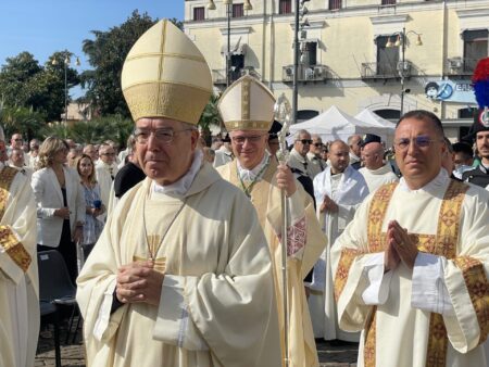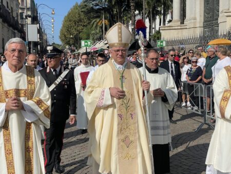 La Santa Messa è stata concelebrata da Monsignor Andrea Bellandi, Arcivescovo di Salerno-Campagna-Acerno; Monsignor Mario Milano, Arcivescovo e Vescovo emerito di Aversa; Monsignor Gennaro Pascarella, Vescovo emerito di Pozzuoli e di Ischia; Monsignor Luigi Travaglino, Nunzio apostolico emerito nel Principato di Monaco.