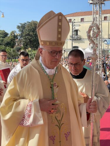Eccellenza, ecco la nostra realtà, viva e vitale, piccola per territorio, ma senza confini grazie ai milioni di pellegrini provenienti da ogni dove e alla vicinanza con il parco archeologico tra i più famosi nel mondo. Oggi, gli innumerevoli devoti della Madonna del Rosario di Pompei si ritrovano in preghiera ad ogni latitudine per la “Supplica”, per vivere, insieme con lei, quella che Bartolo Longo definiva “L’Ora del Mondo”.