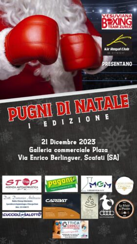Il mondo della boxe si prepara a illuminare le festività natalizie con un evento straordinario. Il 21 dicembre 2023, dalle ore 17, presso la Galleria Commerciale “Plaza” in via Berlinguer a Scafati, si terrà l’emozionante spettacolo pugilistico “Pugni di Natale”.