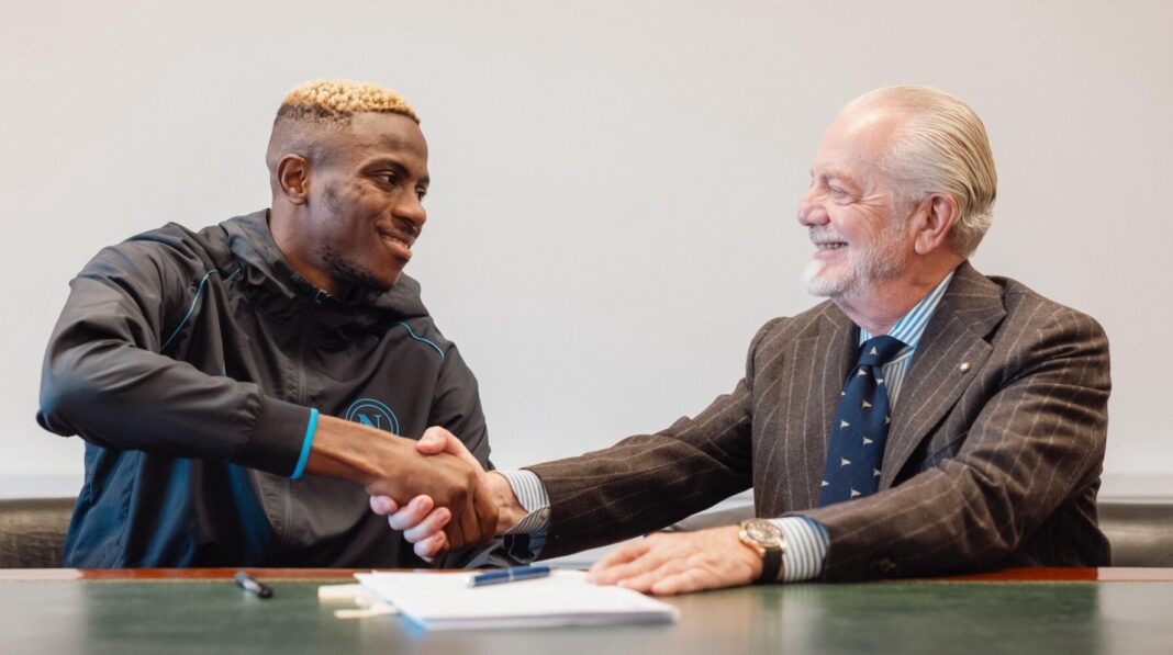 Il 24enne attaccante nigeriano ha prolungato il suo contratto con il club partenopeo fino al 2026. Subito dopo il post social anche la stessa società azzurra ha pubblicato notizia e foto sulle pagine social, con Osimhen che firma e poi stringe la mano al presidentissimo.