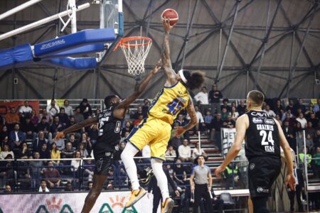 Al di là delle superiori percentuali di tiro da due e ai liberi ed il numero superiore di rimbalzi conquistati, ciò che ha fatto divertire il pubblico della Beta Ricambi Arena Palamangano è stato l’atteggiamento profuso in campo dalla squadra, fatto di tanta intensità, dedizione, concentrazione, grinta, cattiveria agonistica e attaccamento ai colori sociali: tutte cose che, insieme, hanno regalato un successo importantissimo.