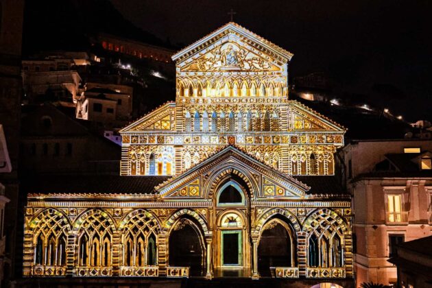 Dopo lo scoccare della Mezzanotte, lo spettacolo si è trasferito nel cuore di Amalfi, in Piazza Duomo con l’Architectural Mapping 3D: uno spettacolo visto per la prima volta in Costiera proprio ad Amalfi nel 2014 e che finora è stato protagonista nelle maggiori capitali internazionali. Dopo 10 anni è tornato a gran richiesta con nuove tecnologie e effetti speciali da lasciare tutti senza fiato per rendere la notte di Capodanno un’esperienza indimenticabile.