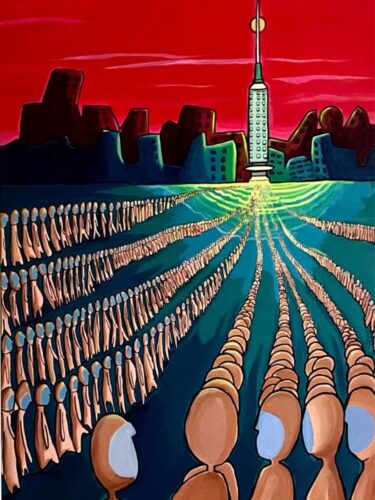 Oggi ripensare a ciò che abbiamo vissuto attraverso le opere di Pino Ruberto appare molto surreale e ricorda a noi tutti quanto lo spirito di adattamento dell’uomo sia la sua salvezza, ma anche la sua più grande condanna: si sopravvive al peggio ma si fa anche l’abitudine al peggio.