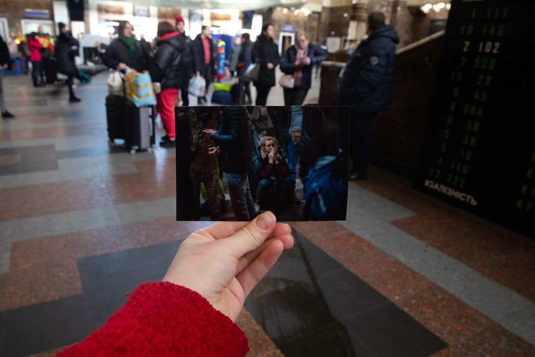 Qui si legge un messaggio corredato da un ottimo servizio fotografico, dove vengono confrontati alcuni scatti risalenti a due anni fa con quelli di oggi, le foto sono sovrapposte per consentire l’osservazione delle differenze. Da un lato quindi abbiamo le foto che raffigurano le immagini della fuga delle popolazioni ucraine (il 24 febbraio 2022) attraverso le stazioni, le partenze alla ricerca di sicurezza, i saluti e le separazioni, lo strazio per aver perduto i propri cari, dovendoli salutare forse per l’ultima volta. Aree che all’epoca divennero un vero e proprio rifugio per le persone, insomma ricordi dolorosi, se non dolorosissimi. Sotto alle foto appena descritte invece ci vengono fatte vedere le immagini che mostrano invece come sono oggi le stazioni ferroviarie, dove la vita sembra scorrere in maniera diversa.
