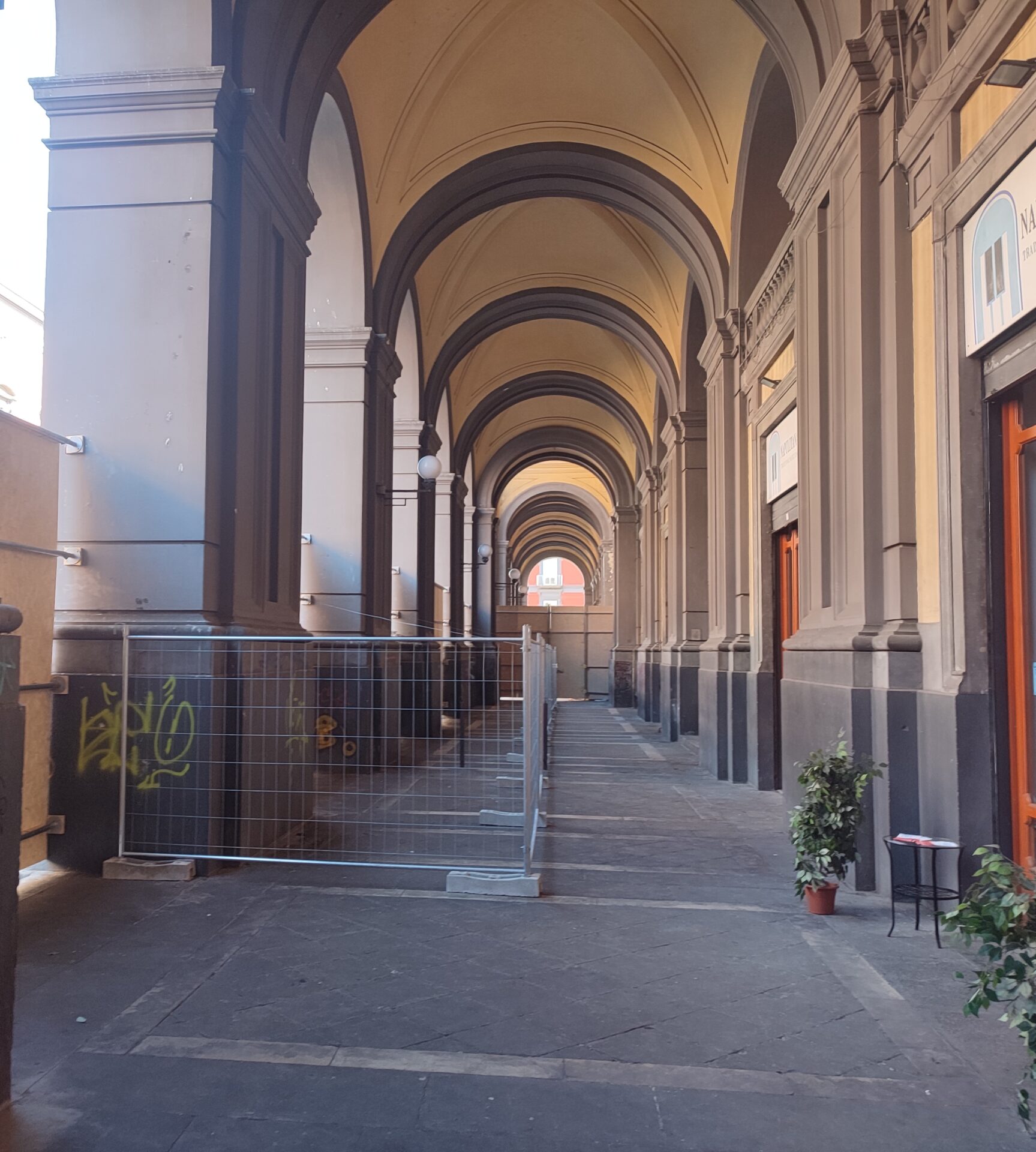 Le aree del colonnato della facciata che si trova di fronte al MANN sono state chiuse con una pannellatura di tutti i porticati, “in quella zona – scrivono dal Comune – era necessario intervenire in prima battuta per evitare nuove occupazioni. Contestualmente inizierà il montaggio dei ponteggi per gli interventi che interesseranno tutti i prospetti interni della Galleria, la copertura e la pavimentazione. Saranno interessate anche le parti della facciata di competenza del Comune – parzialmente su Via Pessina e su Piazza Museo Nazionale – e totalmente su Via Broggia. Successivamente sarà anche la volta della Sala Gemito”.