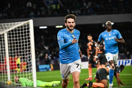 Dopo tante occasioni fatte registrare nei primi 45 minuti, è il secondo tempo a regalare i gol. Alla prima sgasata di Kvaratskhelia, dopo 16 minuti, il georgiano incrocia e serve Mario Rui che mette il contagiri e rispedisce i pallone in mezzo alla difesa ospite che non riesce ad impedire al 77 azzurro di farsi trovare pronto all’appuntamento proposto dal portoghese. Uno a zero tutto azzurro che oltre a segnare sembra anche convincere.