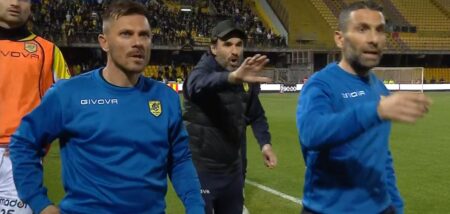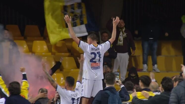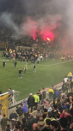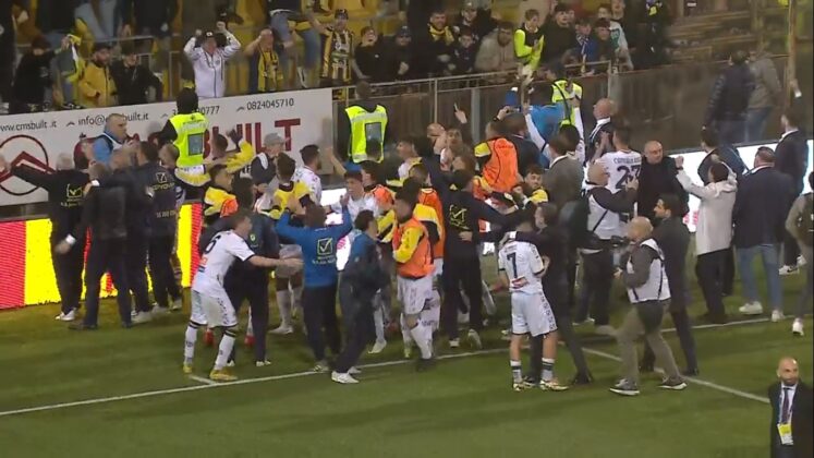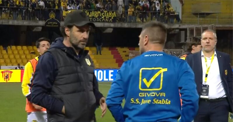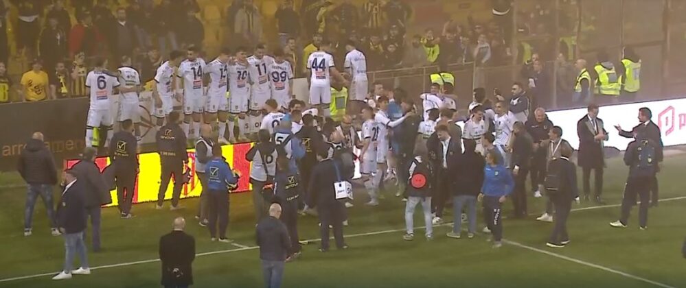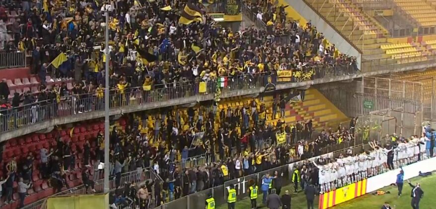 La tensione si taglia a fette in campo, si prosegue con ulteriori cinque minuti di recupero, la Juve Stabia tiene lo 0-0 difendendosi sui cross in area del Benevento e può festeggiare meritatamente lo storico trionfo sotto la curva Nord con i propri sostenitori.
