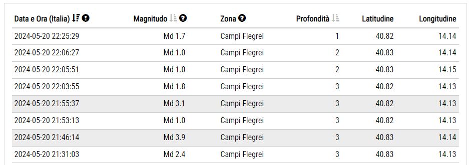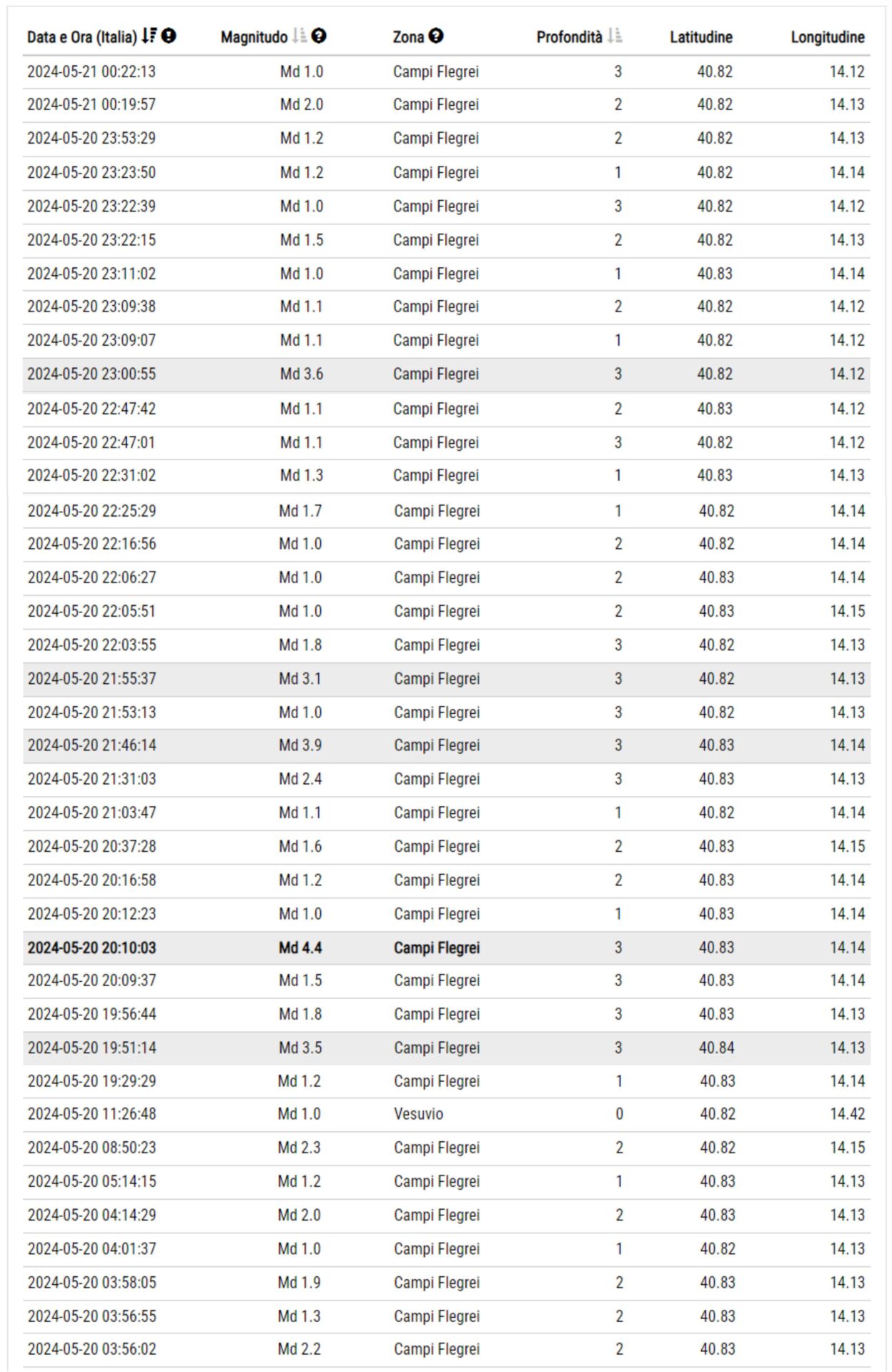 Poco prima, alle 21.31, si era verificato un terremoto di magnitudo 2.4 con epicentro in via Vecchia San Gennaro, sempre nel comune di Pozzuoli.