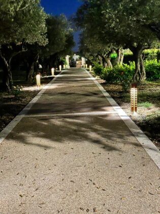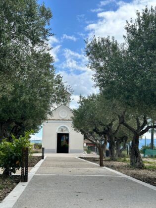 L’opera del M° G. Gioviniani, è stata posizionata su un percorso lungo 900 metri. Ciascuna delle 14 immagini è in bronzo. Un altorilievo di dimensioni notevoli (1,20 x 0,90), poggiato su pietra di Apricena, conosciuta con il famoso appellativo di “Trani”, anch’essa di dimensioni rilevanti (3,00 x 1,40),