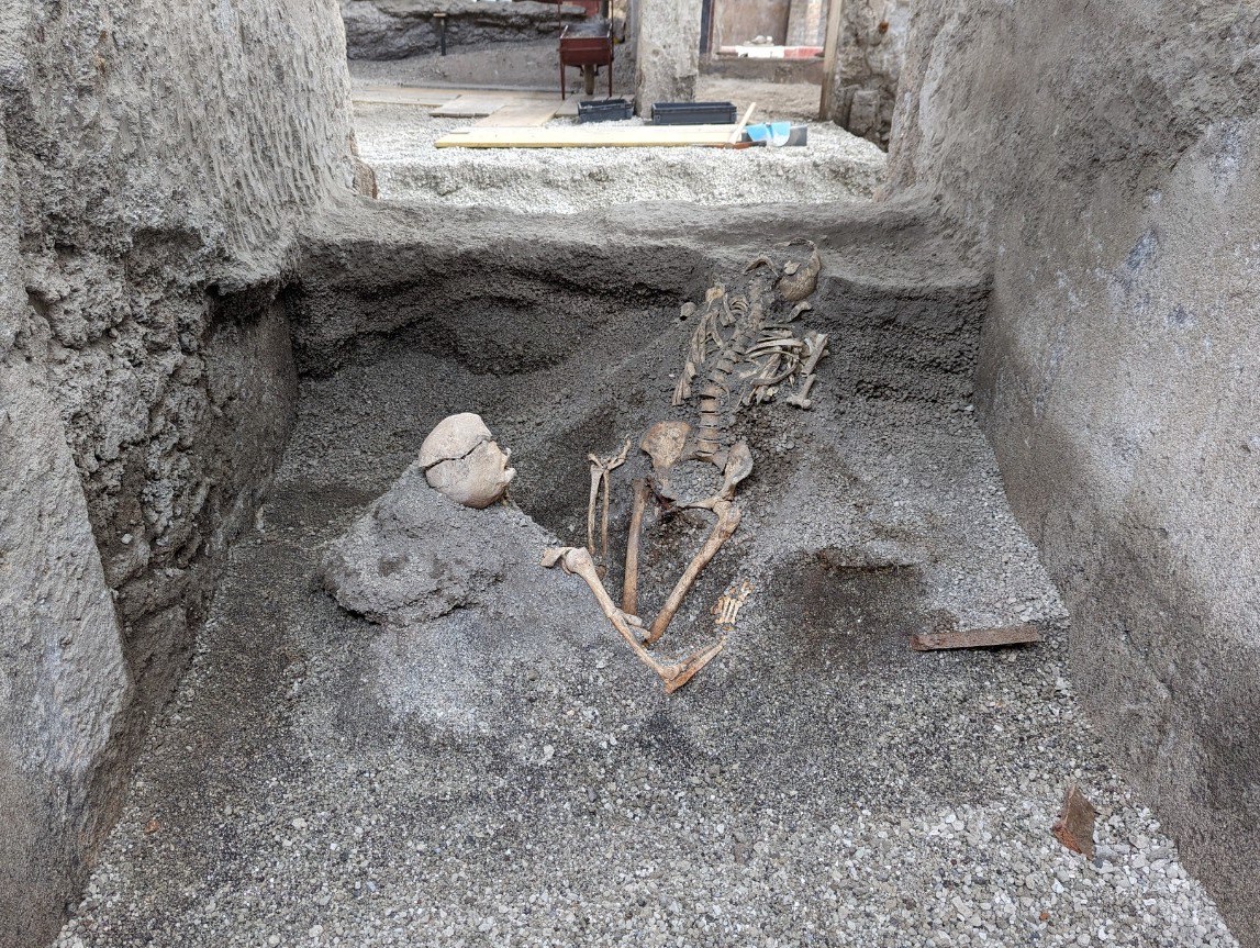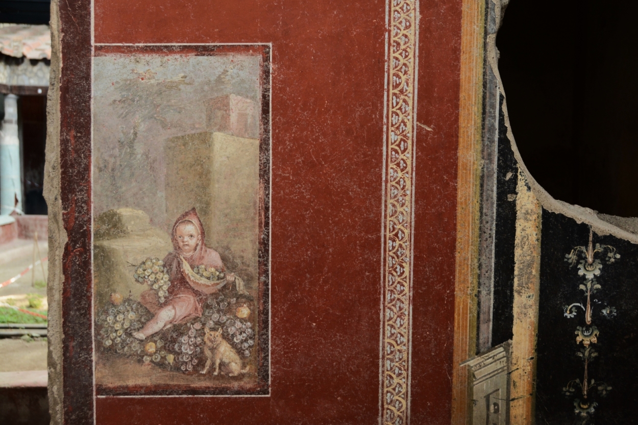 Oltre ai disegni dei bambini, per il cui studio il Parco ha avviato una collaborazione con il dipartimento di neuropsichiatria infantile dell’università Federico II a Napoli, sono stati documentati i resti di due vittime, una donna e un uomo, morti nei lapilli del Vesuvio davanti al portone chiuso della casa dei Pittori al lavoro (chiamata così in virtù del fatto che si stava ridipingendo al momento dell’eruzione); all’interno della casa, è venuto alla luce un piccolo cubicolo (“camera da letto”), allestito come studiolo in prossimità del tablinum (sala di ricevimento) della casa. Tra le scene mitologiche un quadretto singolare, senza confronti del repertorio vesuviano, con la rappresentazione di un piccolo bambino in cappucciato, forse un figlio deceduto dei proprietari.