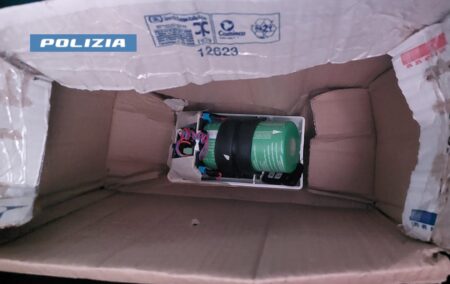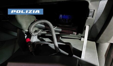 All’interno delle auto sono stati trovati e sequestrati un ordigno rudimentale delle dimensioni di circa 25 cm x 10 cm consistente in un serbatoio contenente combustibile con un piccolo telecomando per azionare un congegno rinvenuto all’interno del bagagliaio in una scatola; targhe false; due lampeggianti di colore blu portatili con cavo predisposto per il collegamento con accendisigari e sirena bitonale, del tipo di quelli in dotazione alle forze di Polizia.