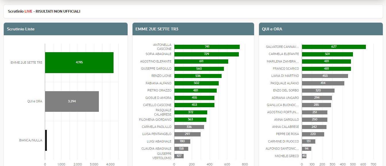 Per Qui e Ora boom di preferenze per Salvatore Cannavacciuolo e Marilena Zambrano, entrambi hanno ampiamente superato le 400 preferenze e si riconfermano in Consiglio Comunale, ma questa volta nel gruppo di minoranza.