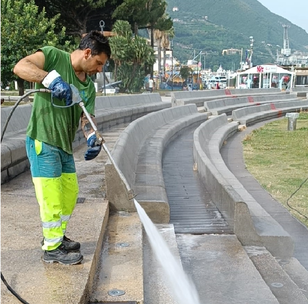 Di concerto con l’amministrazione comunale, l’azienda ha impiegato operatori e mezzi per un accurato servizio di lavaggio che ormai da qualche giorno sta interessando tutto il lungomare stabiese.