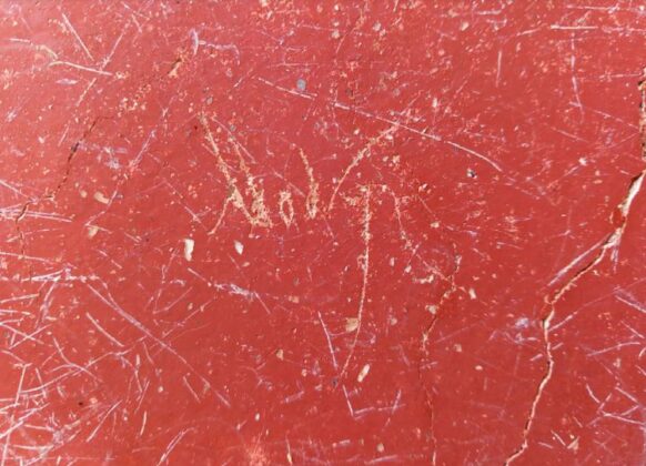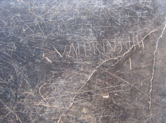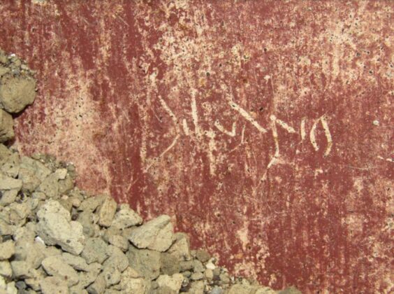 Si tratta di iscrizioni graffite, di firme autografe di persone che attraversarono quei luoghi e lasciarono traccia della loro presenza. Oltre ai nomi dipinti (in greco) accanto alle rappresentazioni di Elena e Paride, compare quello “graffiato’ di un tale Pudens; quello calligrafico di un Vesbinus, e, ancora, quello rozzamente segnato da un Valerius, mentre ad un Silvanus doveva essere indirizzato un saluto; ci sono, poi, tracce anche di un/una Modest– (Modestus? Modesta?).
