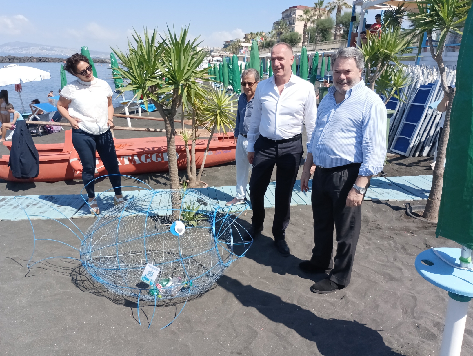 Sono arrivati sulle spiagge di Torre del Greco i “pesci mangiaplastica”, speciali contenitori realizzati interamente a mano dagli artigiani incaricati dalla ditta Velia Ambiente attraverso l’utilizzo di ferro e altro materiale totalmente riciclato.