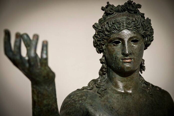 La nuova esposizione dell’Antiquarium di Boscoreale ha riservato un angolo della prima sala, dopo l’ultimo settore dedicato all’alimentazione, all’esposizione di un efebo lampadoforo, portatore di lampade (inv.13112) rinvenuto a Pompei nella Casa di M. Fabio Rufo (VII 16, 19).