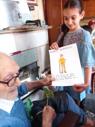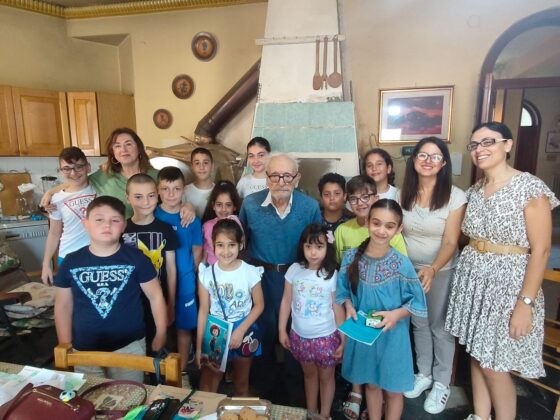 Tutti i bambini hanno mostrato cura e attenzione per nonno Domenico e questo è il valore aggiunto del percorso “Costruiamo gentilezza”. “Una volta finita la guerra – ha continuato – tornare a casa è stata un’impresa. Arrivati a Roma con il treno, abbiamo scoperto che i binari che portavano a Napoli erano stati distrutti. E così sacco in spalla, siamo arrivati in Campania camminando. Si camminava la notte e il giorno ci si nascondeva nei campi di grano turco, che faceva da nascondiglio ma anche da nutrimento. Nel corso nel nostro cammino abbiamo incontrato tante persone, donne e bambini soprattutto, eravamo tutti fratelli e ci si aiutava l’un l’altro”.