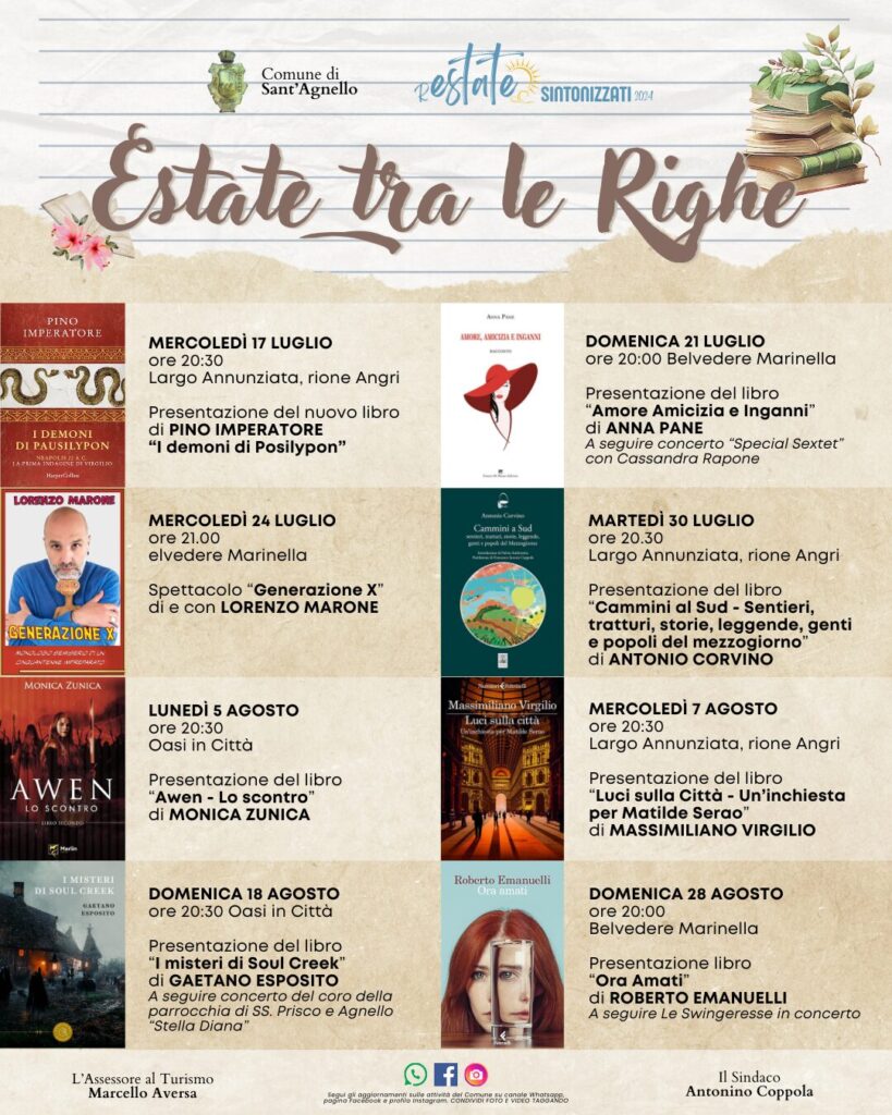 Il maestro dello humor partenopeo, Pino Imperatore, inaugura la rassegna letteraria del Comune di Sant’Agnello “Estate tra le Righe”, nell’ambito del cartellone di eventi “rEstate Sintonizzati 2024”.
