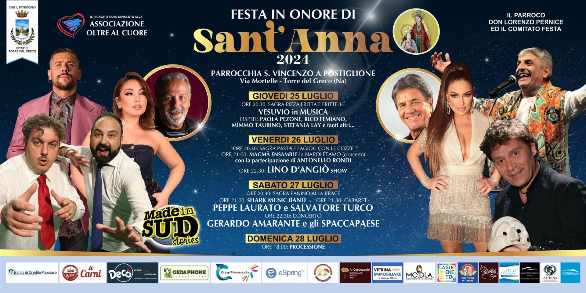 Incentrate sull’aspetto religioso le considerazioni del parroco di San Vincenzo a Postiglione, don Lorenzo Pernice: “Il 26 luglio ci rimanda a suggestivi momenti di spiritualità e umanità. La festa ci offre uno spazio per sostare, riunirci insieme, guardare in alto e sperare in un futuro migliore, il cui avvento dipende anche dal nostro impegno. Una festa attesa da tanti, che ci permette di considerarci comunità, perché è la festa non solo della nostra parrocchia ma di tutta Torre del Greco e della Litoranea. La tanto attesa processione del carro di Sant’Anna, domenica 28 luglio, che passa per le nostre strade, è segno di speranza per tutte le famiglie. Le sagre e gli spettacoli organizzati dai volontari ci fanno sperare sempre nella chiesa del futuro, sempre viva nella fede”.