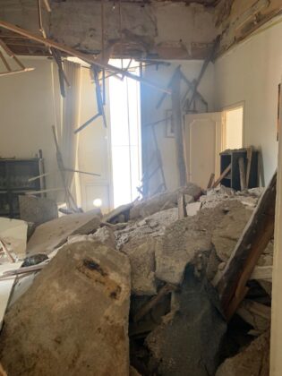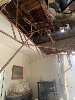 Alle 15.45 i carabinieri sono intervenuti in via Santa Maria Antesecula 126 dove poco prima il solaio di un appartamento al IV piano, corrispondente alla camera da letto, aveva ceduto.