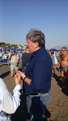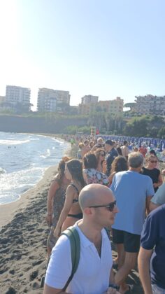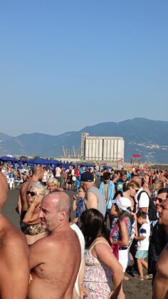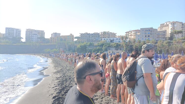 Splendida iniziativa al Lido Azzurro di Torre Annunziata dove i bagnanti si sono uniti in una catena umana lungo la riva.
