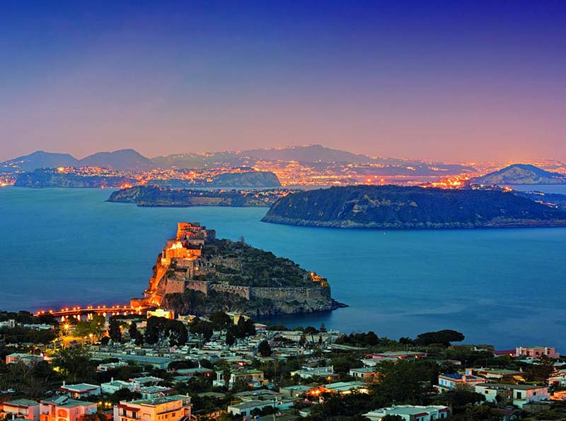 Anche Procida è nata dalla produzione lavica di diverse bocche vulcaniche, ed è ricca di attrattive per il turista in cerca di privacy. Nell’antico borgo dei pescatori della Corricella, una delle nove contrade dell’isola con il suo porticciolo seicentesco, si respira un’atmosfera senza tempo. Addentrandosi nelle viuzze interne, i palazzi e le architetture imponenti del centro storico evocano solo in apparenza un’antica fortezza difensiva. In realtà, i cortili verdeggianti, nascosti dietro i portoni degli edifici, custodiscono stili di vita più tranquilli e informali, pur ravvivati da diverse iniziative culturali.