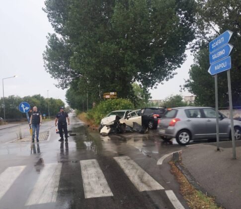 Una Citroën, proveniente da Scafati alle ore 7.45, con violenza ha urtato una Fiat Punto proveniente da via Casone, direzione Cavalcavia Antonio Morese. Fortunatamente il bollettino dice solo tanto spavento. La dinamica è al vaglio degli agenti al comando del colonnello Gaetano Petrocelli.