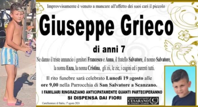 L’ultimo saluto al piccolo Giuseppe Grieco è previsto per lunedì 19, alle 9 presso la chiesa di San Salvatore a Scanzano dove si terranno i funerali.