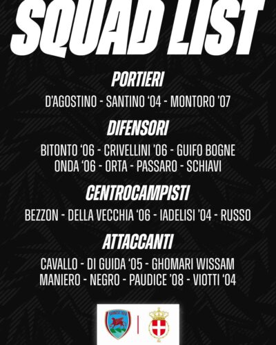 Centrocampisti: Bezzon, Della Vecchia ‘06, Iadelisi ‘04, Russo.